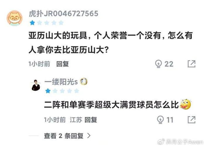 作为对比,雷霆当家球星亚历山大本场比赛出战近36分钟,16投9中,罚球线上7中7拿到26分,另有3篮板8助攻进账。二人表现反差分明,以至于有球迷直言不讳地表示:这一场比赛,布伦森就是亚历山大的玩具!