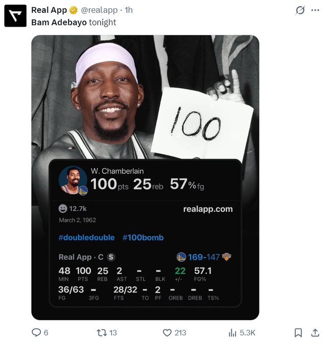 因为阿德巴约恐怖的首节表演,他也登上了全美第二热搜,第二节的他手感有所下滑,8中3+三分7中6拿到12分1篮板1抢断,半场已经拿到43分。