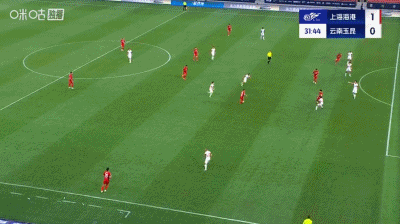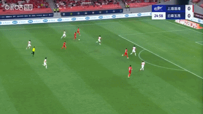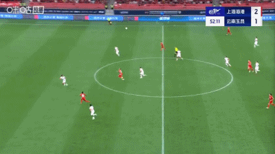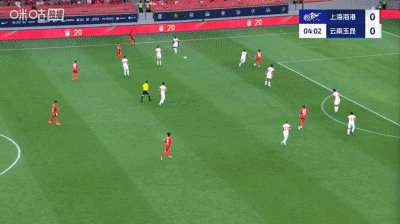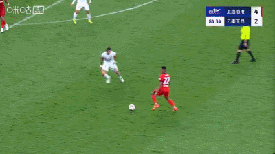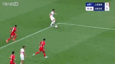 第37分钟,扳平比分,侯永永助攻,奥斯卡头球得分,云南1-1